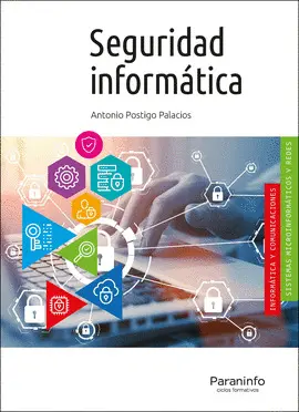 La seguridad informática es una pieza clave;de cualquier organización. Conocer sus técnicas;y herramientas es fundamental para los profesionales;de la informática.;Este libro desarrolla los contenidos del módulo profesional de Seguridad Informática del Ciclo Formativo de Sistemas Microinformáticos y Redes, perteneciente a la familia profesional de Informática y Comunicaciones.;Seguridad informática permite a cualquier persona introducirse en la seguridad informática y conocer los procesos y herramientas actuales en la implantación y mantenimiento de sistemas seguros. Entre estos contenidos, cabe destacar;--- Protección pasiva: protección física del sistema de información y de los centros de procesos de datos, y almacenamiento seguro y su recuperación.;--- Protección activa: conocer las metodologías de los atacantes para implantar otras que protejan los sistemas y reparen los fallos lógicos.;--- Documentación y desarrollo de auditorías: para abordar procesos de análisis forense, intrusismo controlado y auditoría web, siempre atendiendo a la legislación vigente.;--- Procesos e instrumentos: monitorización de tráfico, gestión de contraseñas, test de intrusión, gestión de eventos, cifrado y protocolos seguros, protección en switches y routers, y explotación de DMZ, VPN, cortafuegos y servidores proxies.;El autor, Antonio Postigo Palacios, es ingeniero informático e investigador en didácticas de las ciencias. Desde el año 2000 imparte clases en los diferentes ciclos formativos de la familia profesional de Informática y Comunicaciones, y en materias relacionadas con la seguridad informática.